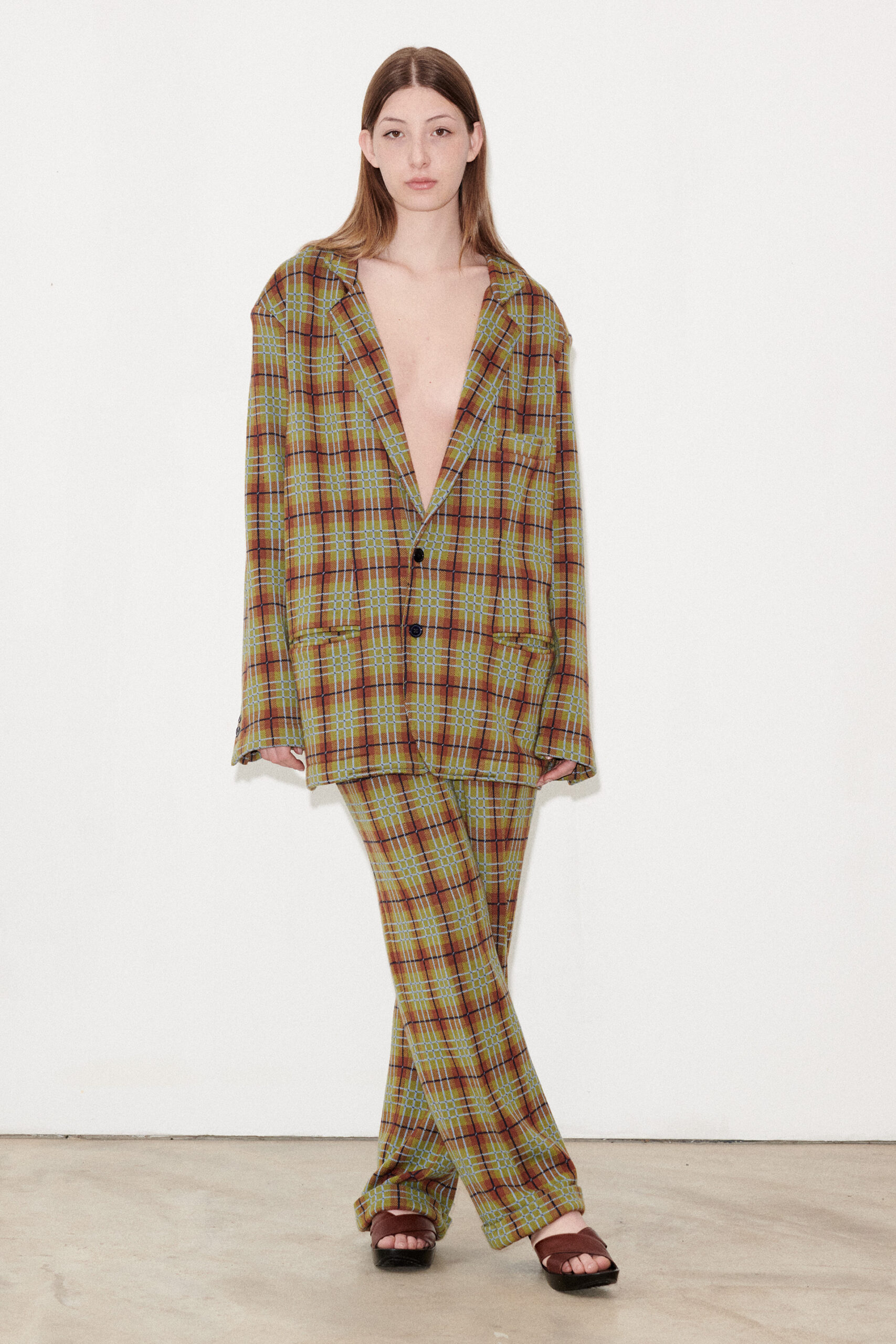 Viola is 180cm/5’9 and wears a size 42