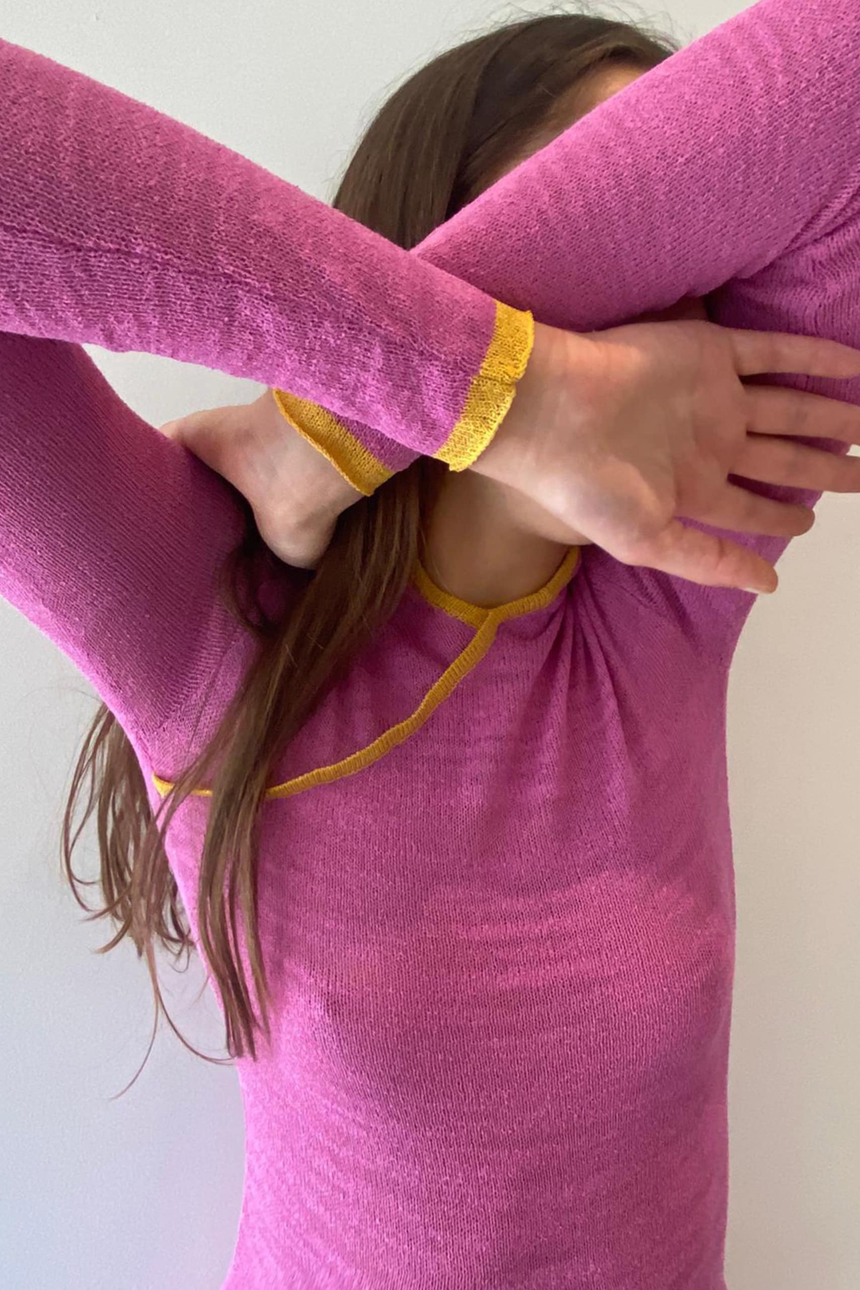 Dry clean, or delicately wash in 30° water with neutral soap. Dry flat, immediately after washing. Do not expose wet garments to direct light.