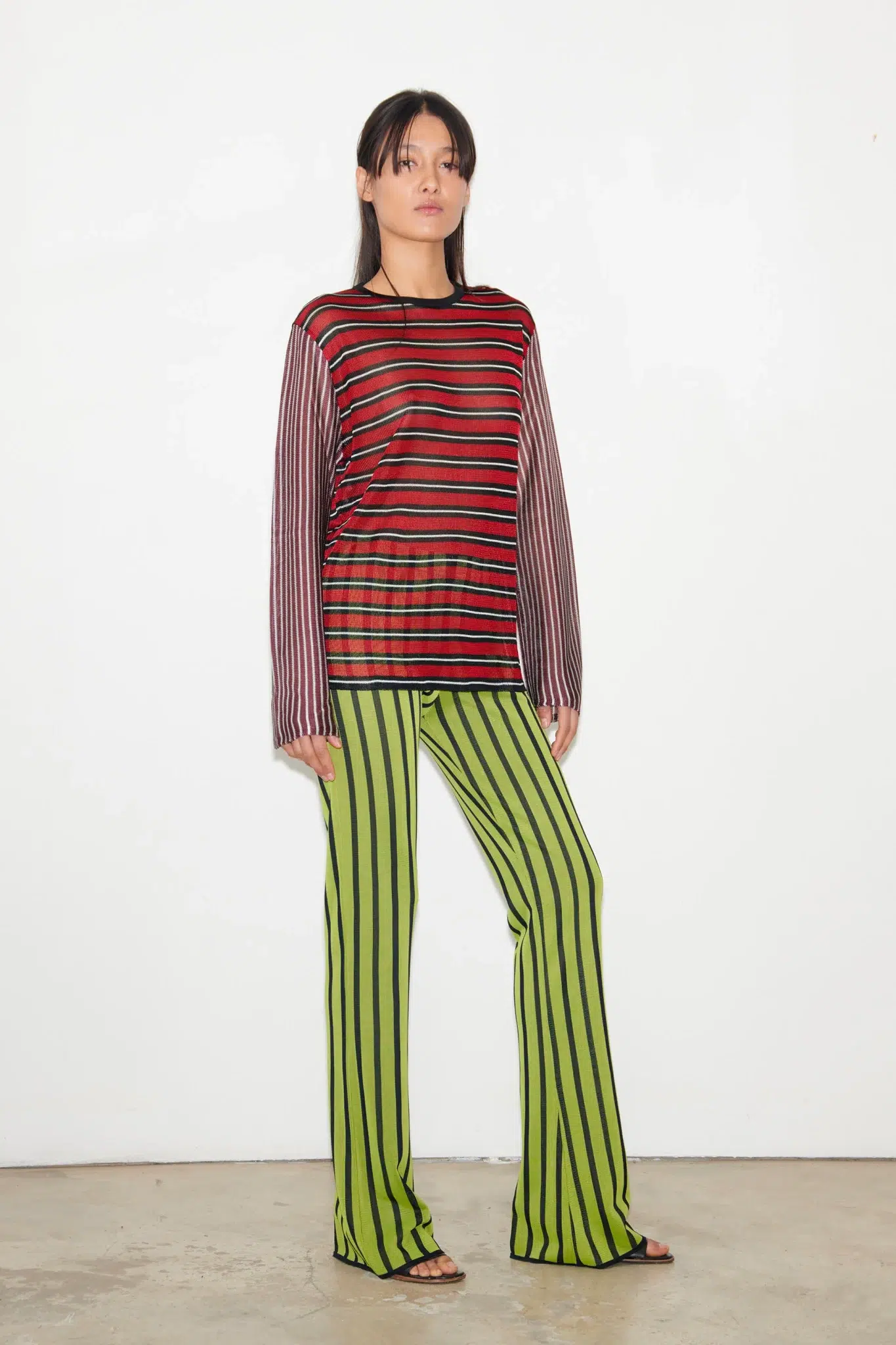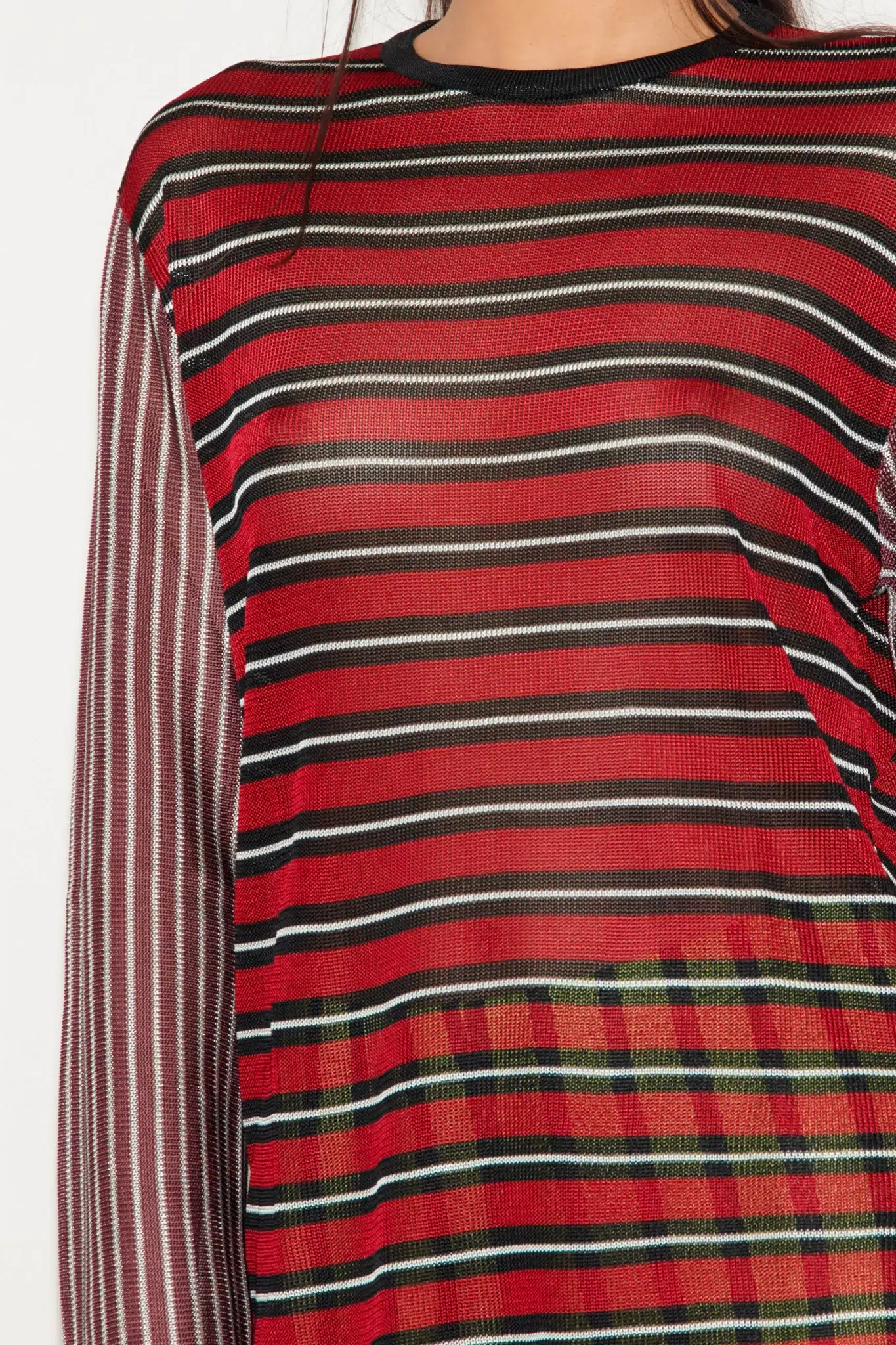 Loose top in bright viscose knit with vertical and horizontal stripes. Relaxed silhouette with crew neckline and softly flared long sleeves.