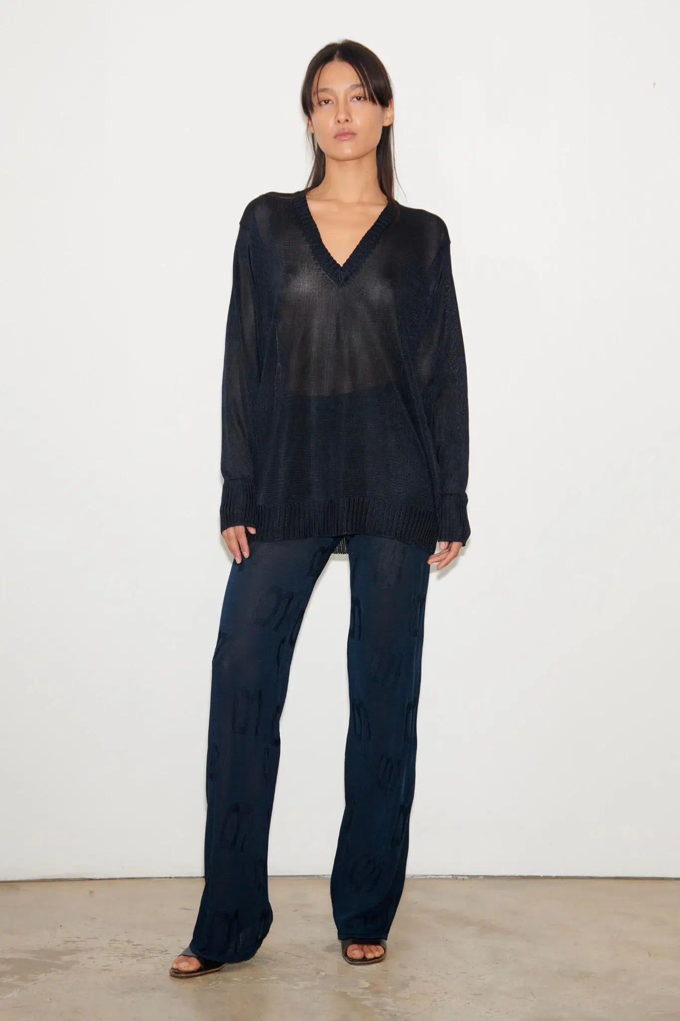 Loose knitted V-neck jumper in soft viscose, with ribbed cuffs and hem.
