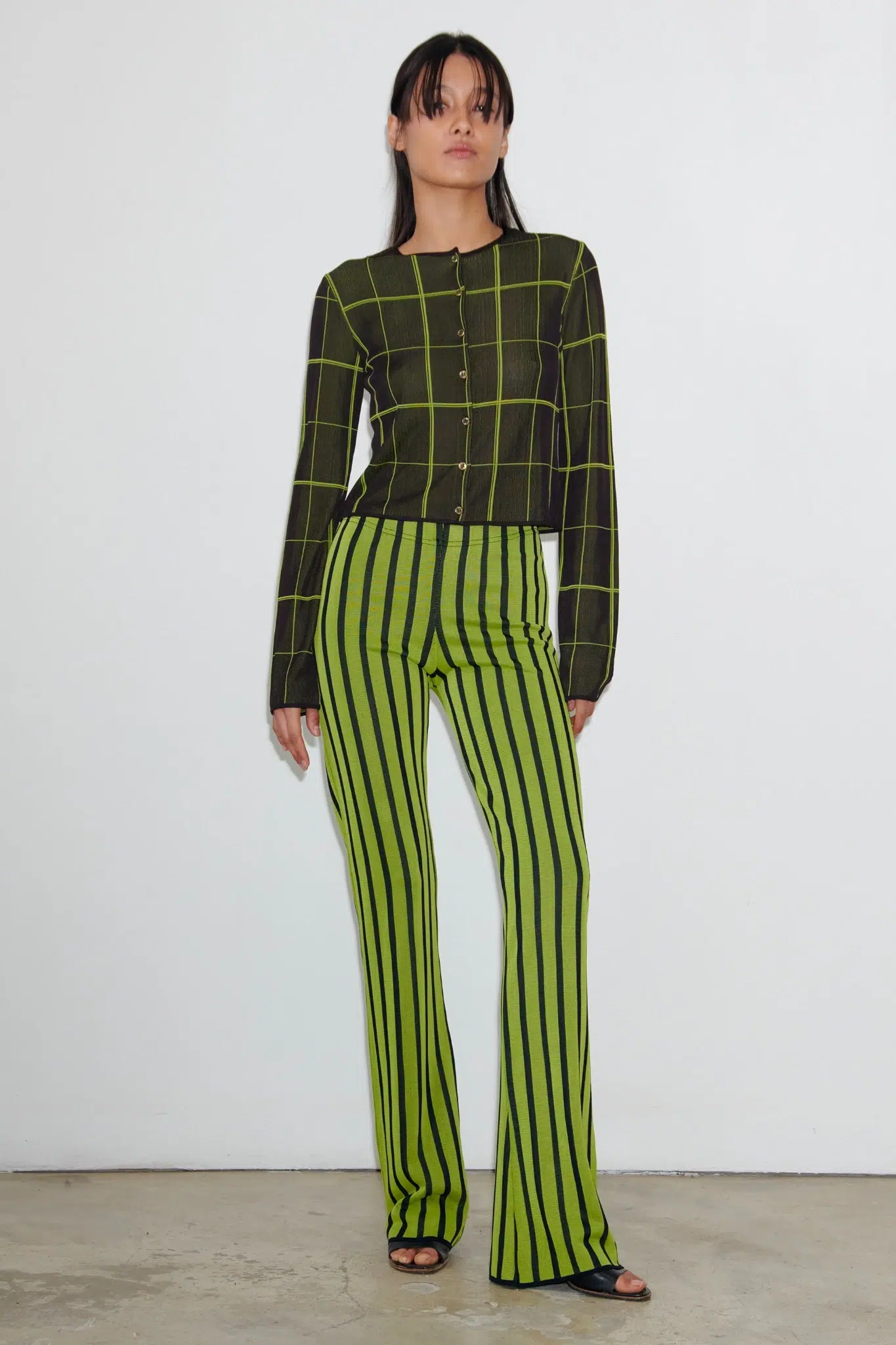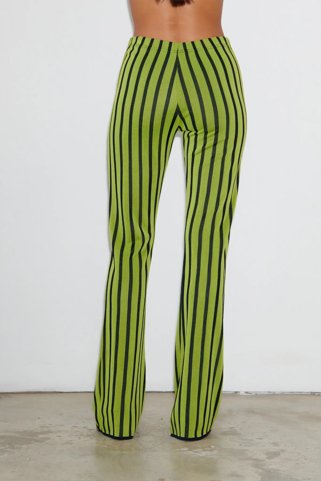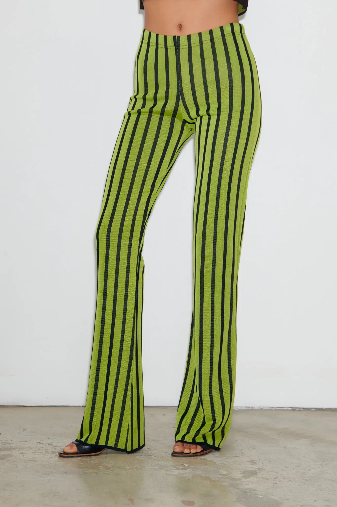 Knitted pants in opaque viscose, featuring vertical stripes and softly flared legs.