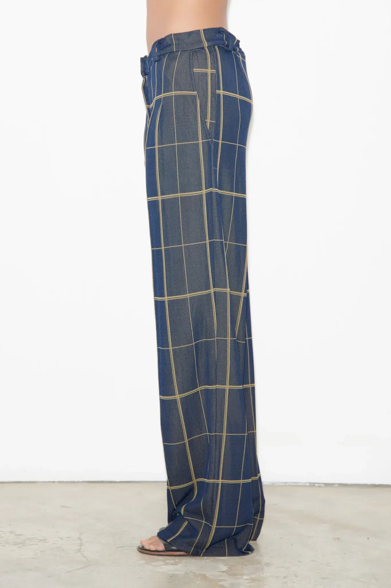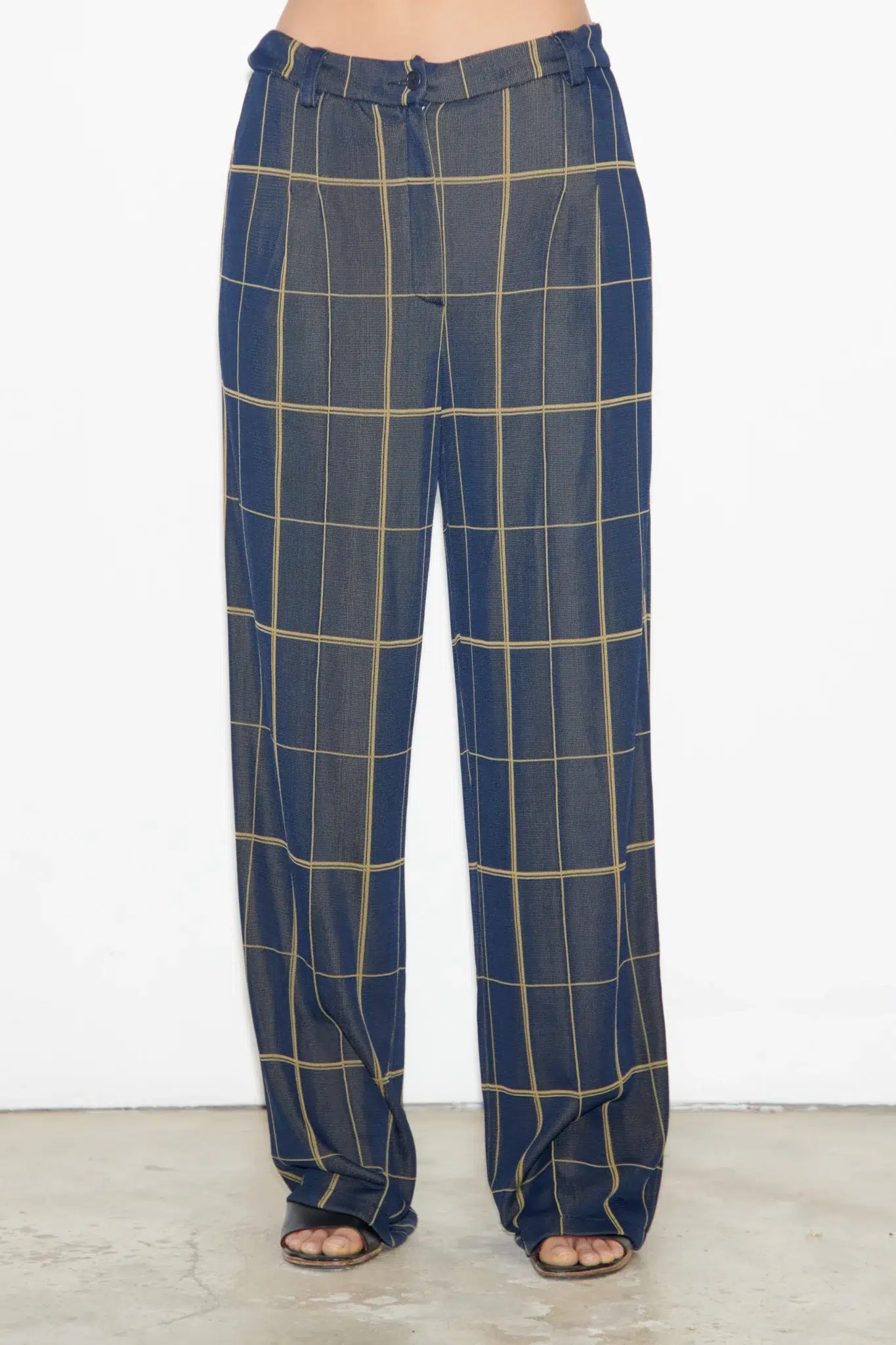 Straight checked tailored knitted pants in jacquard with two front pleats